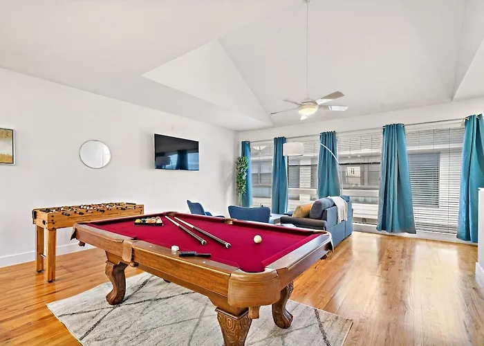 Située à 2 km de Tunnel à Houston, la villa de 186 m^2 se trouve près de Mt. Zion Baptist Church. La villa comporte un pupitre d'écriture, le Wi-Fi et une TV.